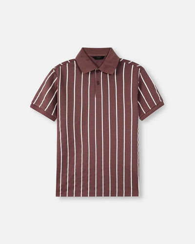 Men's Knitted Striped Polo Shirt Lapel Half Sleeve Jacquard T-shirt